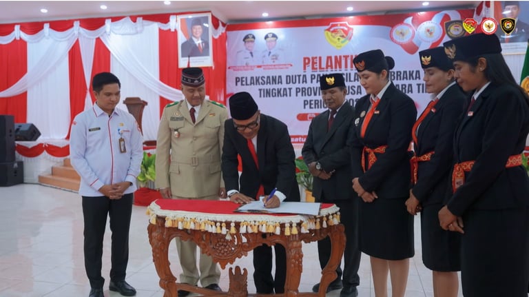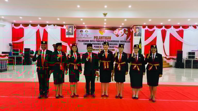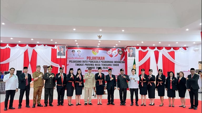 Gubernur Nusa Tenggara Timur, yg diwakili Plt, Kepala Dinas Pemuda dan Olah Raga, Linus Lusi, S.Pd,.M.Pd, melantik Pengurus Duta Pancasila Paskibraka Indonesia Periode 2026 - 2030, pada Senin 23 Februari 2026, bertempat di Aula Rumah Jabatan Gubernur, yg di hadiri Perwakilan Forkopimda NTT, Kepala Badan Kesbangpol Provinsi NTT, Ketua DPPI Pusat dan Utusan BPIP RI, dan Para Pejabat Adminstrator, dan Undangan lainnya.